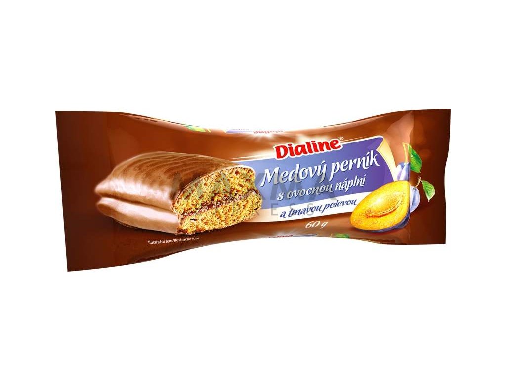 Dialine Medový perník plněný švestkovou náplní v tmavé polevě 60g