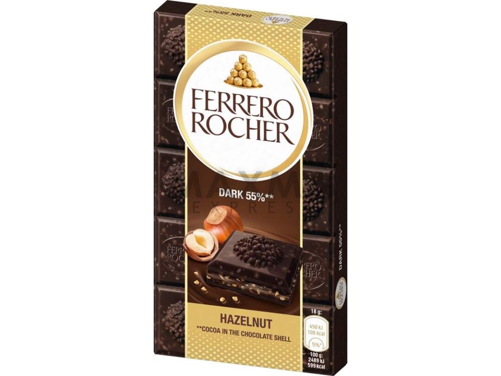 Ferrero Rocher Čokoláda hořká s krémovou náplní a kousky lískových oříšků 90g