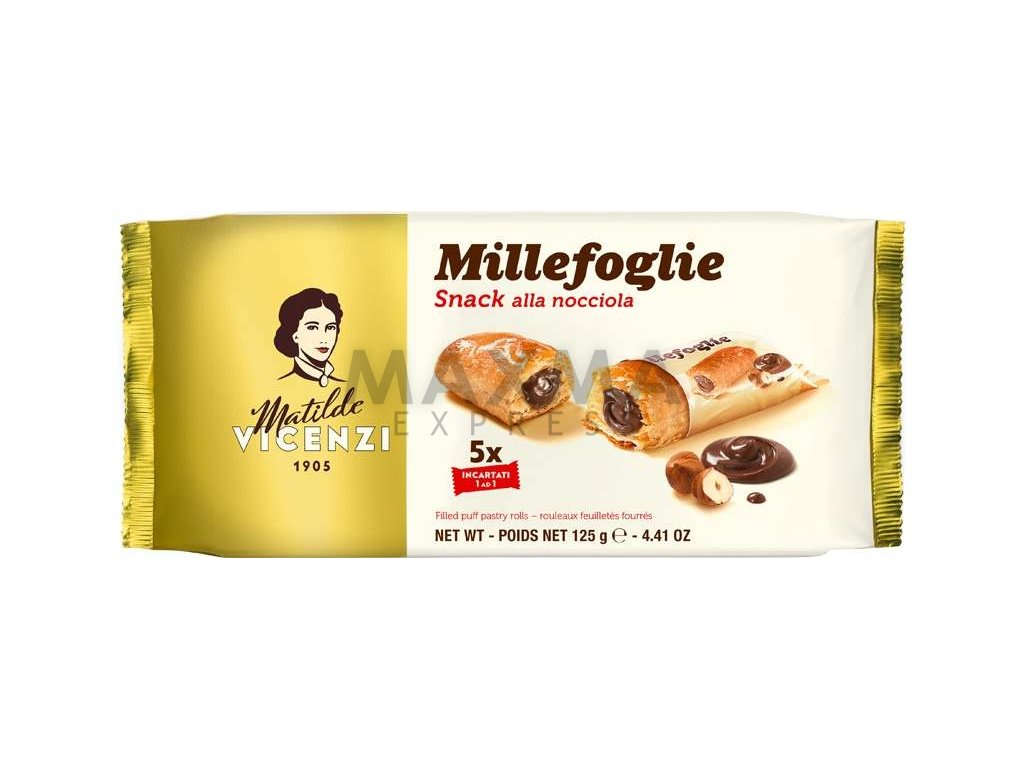 Matilde Vicenzi Mini Snack z listového těsta s lískooříškovou náplní (5ks) 125g