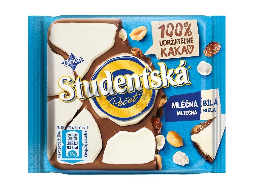 Orion Studentská pečeť Čokoláda mléčno-bílá rozinky+arašídy 90g